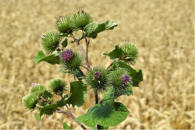 COMMON NAME: BURDOCK, beggar’s buttons, thorny burr LATIN NAME: Arctium lappa FAMILY: ASTERACEAE PARTS USED: Root, leaf, seeds   REGIONS: Mediterranean, Scandinavia, Europe, Middle East, China, Japan,