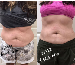 Lipolaser Body Contouring System stimulates adipose cells to release much of their cellular content (water, fatty acids, and glycerol) into the interstitial space so that it is subsequently drained and naturally metabolized by the body. This is how the fat cells shrink, which is visibly seen as a loss in the treated areas, slimming patients effectively. Laser pads are positioned around the body area to be treated and are held in place with our convenient Velcro straps. Once turned on, the machine emits lasers onto the skin, generating heat and metabolizing fatty acids within your adipocytes or fat cells.